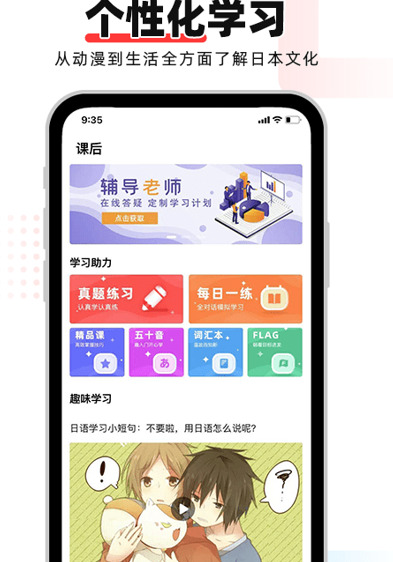 5.让您根据自己的情况快速在线学习日语知识,享受的学习服务也会更加全面。