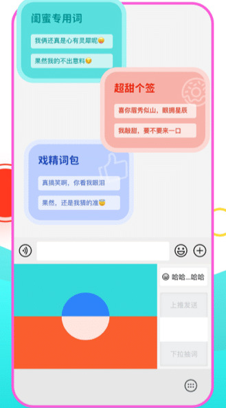 DD输入法是一款深受年轻人喜爱的趣味输入法。软件提供应用随机抽词、下拉抽词、推送和发送等操作功能,还有许多单词包、糊弄学、爱豆控评、 朋友圈专用等词条免费下载,让你的聊天不用费力思考回复语。DD输入法的万能回复,可以回复新年祝福、跨年文案、 以及个性签名等应有尽有,年轻人就要做自己的抽象文学大师。DD输入法拥有文字一键转换为抽象表情功能,能让聊天变得更可爱,同时还支持微信聊天分享。感兴趣的话,就来下载体验吧!