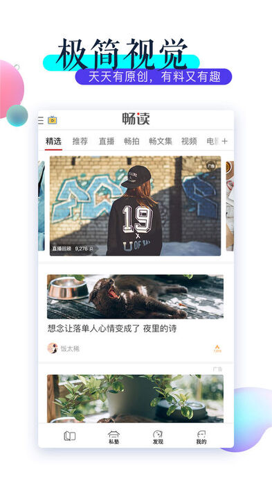 2.简洁的界面设计,有几个栏目板块,选择原创更有料、更有趣。