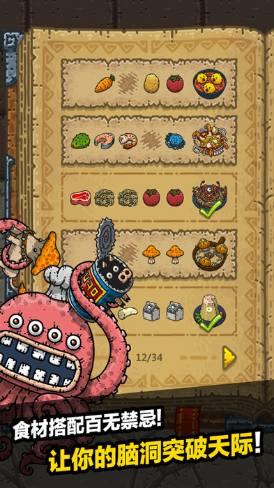 3.原创烹饪系统,只有意想不到,没有烹饪配方组合。各种食材随意组合搭配,永无止境的配方收集。