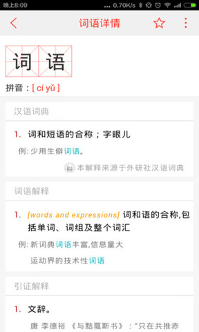 4.专业内容丰富,提供详细的词语解释、引证解释、例句、语法、同反义词等,是学习汉语词汇的最佳助手。