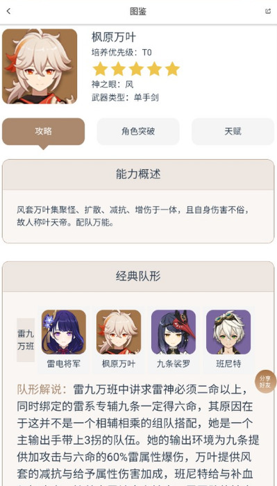 3.提供数据库查询服务,包括角色培训建议、角色策略、圣物和武器搭配、等级和人才突破的材料总结。