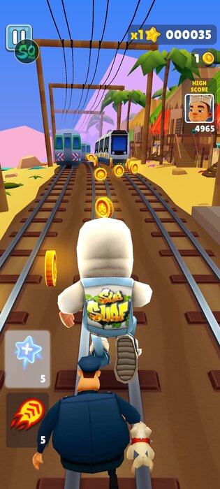 地铁跑酷全地图版下载后,玩家能够有一款竞有竞争力的酷跑手机游戏。游戏采用最清晰的主题画面,各种丰富的清晰角色角色自由选择,升级副本享受最独特的道具组合游戏玩法,多层级别模式清晰而独特。地铁跑酷全地图版下载的游戏绘画风格很精致,有各种不同的新游戏玩法,伴随着愉快的音效,你会逐渐控制技能。游戏中,玩家只需要上下滑动,以避免障碍物和即将到来的火车,以帮助英雄防止被易怒的警察和他的狗追逐,还可以在空中左右改变方向,或者双击屏幕转移滑板。感兴趣的话,就赶快来下载体验吧!