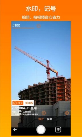 1.拍照界面,记号、水印直接设置或编辑,所见即所得,简洁明了。