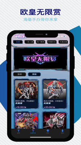 欧皇无限赏是一款为手办盲盒爱好者开发的,可随时随地在线抽盲盒的APP。软件聚集各大正品手办,供用户在线抽盲盒,随时随地抽盲盒开箱,商品保真,概率公开透明。欧皇无限赏有着更强大的服务模式,带来各种价格盲盒供大家选择,用户可以通过手机下单抢购。同时,平台还提供咨询服务,你可以直接联系每家商店的客户服务,了解商品的一些基本信息,更方便地获取信息。欧皇无限赏严格检查所有产品的质量,并轻松保证这些产品的质量,优化个人购物效率。喜欢手办的玩家就赶快来下载吧!