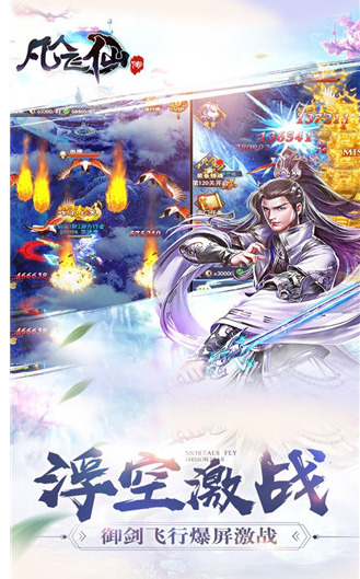 凡人飞仙传游戏拥有优质的游戏画面,多样的游戏玩法,贴心的一键挂机,福利极多的活动内容。凡人飞仙传游戏有着全新的玩法,轻松挂机就能升级。创新无限制浮空玩法、御剑飞行,纵横三界,数百种仙法魔功、千人同屏,华丽特效呈现爆燃仙界大战,更有华丽时装、法宝灵兽等百变玩法,带你畅游最精彩的仙侠世界。玩家不仅仅能够御剑飞行,瞬间跨越千山万水,受凡人敬仰,还能在空中御剑斩妖除魔,与其他玩家比拼斗法,感受浮空带来的爽快游戏体验。