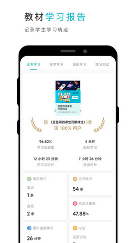 1.每个学生在云教材中的学习进度也将呈现在云课堂上。帮助教师跟踪课堂上学生教材的学习情况、督和评价。