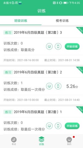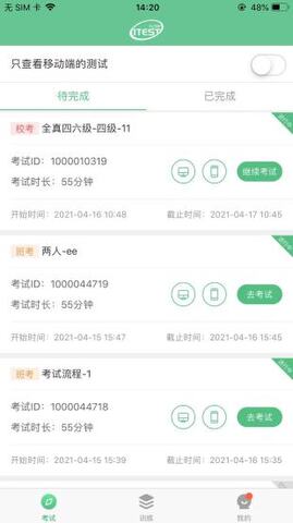 3.及时收到考试通知,主页显示所有考试列表,不再遗漏考试。您还可以快速筛选移动终端支持的班级考试,并直接进入考试。