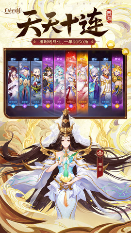 2.每天送十连,抽卡自由不是梦,一年3650抽的超豪华福利,让你在取经的路上,结识每一个神仙妖怪,听天仙奏乐,与西方诸佛辩法,快乐无极限。