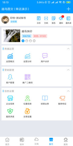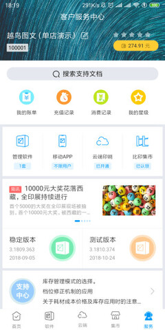 2.云端:云端的相关配置、云端账务、印刷商城等功能。