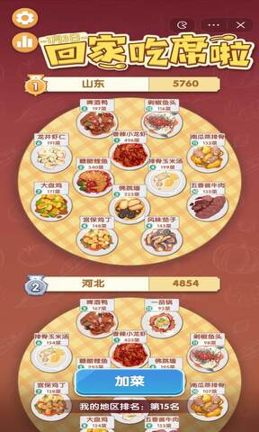 2.游戏结合区域竞争游戏,通关不仅可以获得菜肴的皮肤,还可以为自己的区域添加菜肴,比较哪个区域的菜席更丰富,每天菜品数量最多的区域获胜。