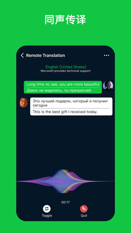 •语音及视频翻译:为全球提供高质量的通话,并支持实时翻译。