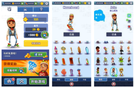 1.游戏中有许多角色和滑板可供选择,您将进入地铁世界,完成一系列跑酷任务。