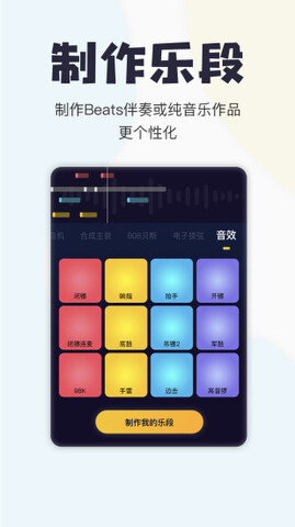 3.【制作乐段】有了它,你可以随意制作Beats,节拍器和自动对齐功能可以帮助你更简单地保持节奏的速度。