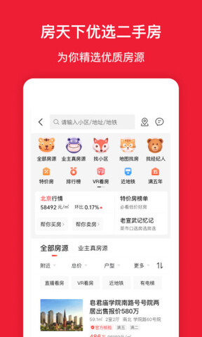2.提供全国各地区的房源信息,包括新房、二手房、租房等,能够满足用户的各种购房租房需求。