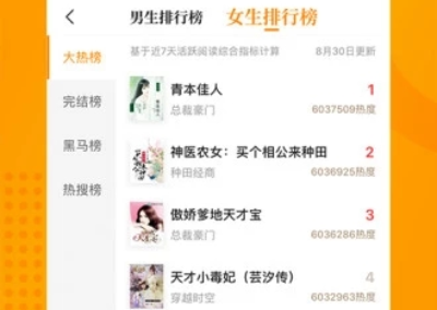 3.每天为您推荐好书、热榜、结尾榜、黑马榜、热搜榜,帮您找到当下最热门的好书,摆脱书荒。