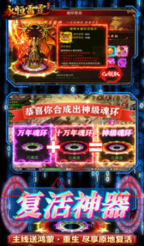 永恒雷霆是一款单职业复古传奇手机游戏。福利超多,极品魂环免费送,装备全靠打,BOSS不断,轻松挂机脚本。永恒雷霆传奇手游创新全职业,将战术技能融为一体,炫耀闪闪发光的全屏绝技,让你和兄弟放飞自己,开始热血战斗。沙城争霸玩法很多,很多人在同一个屏幕上火爆对抗,重温传奇!