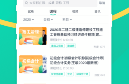 3.平台提供建筑工程、会计金融、职业资格、医疗卫生、技能提升、学历提升、公职等7类课程。