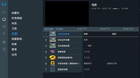 6.最后就可以看到该软件有了丰富的电视频道以及电视节目。