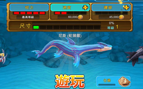 2、完成50项任务,寻找宝物获取金币和宝石,用于升级鲨鱼或购买特殊救援;