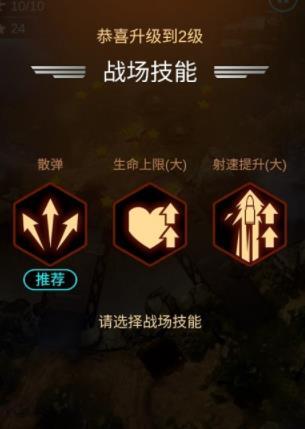 2.下载游戏后可以通过战斗积累的经验值进行升级,每一级玩家都可以在三选一的战场技能中进行选择。