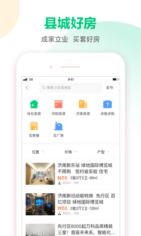 58本地app是一款正规可靠的同城服务软件,拥有接任务赚钱、发布招聘信息等功能,绑定手机号或者微信号就可以使用软件了。58本地版app提供了包括房屋租赁、二手市场、生活服务、招聘信息、车辆买卖租赁等多种分类信息服务。让用户在日常生活中可以更加方便地找到所需的资源。感兴趣就快来下载软件使用吧!