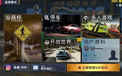 3.开放世界城市供您驾驶,尝试DRIFT模式来获得一些刺激, 完成各种任务以赚取更多金币。