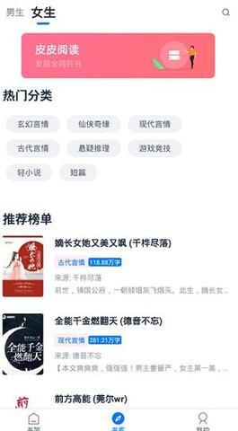 皮皮阅读app是一款高质量的看免费小说软件,拥有海量最新最热门的小说资源,还有各种新颖的题材分类,全部都是可以免费在线阅读离线下载的,能够满足不同用户的阅读需求。皮皮阅读app还支持用户自定义设置背景颜色、字体排版、翻页方式、人声朗读等参数来满足你的个性化需求。喜欢就快来下载软件使用吧!