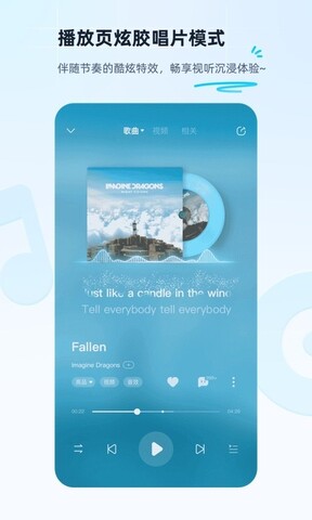 2.新版播放页面,边听歌边看视频,视听双享受。