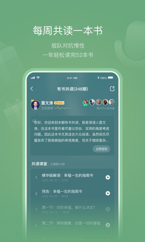 2.网络上的读书会,每周与千万书友共读一本书,组队对抗读书惰性。
