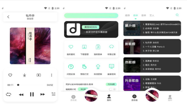 软件界面非常简洁,提供了抖音榜、新歌榜、飙升榜等榜单,帮助用户发现时下热门歌曲。