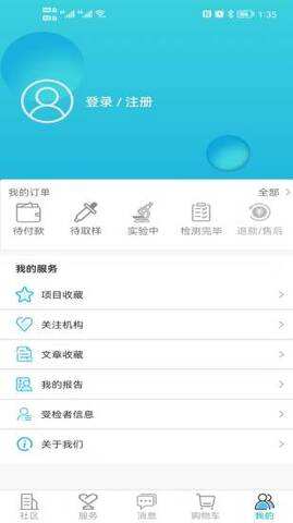 1.【社区】进入社区界面,可以阅读发布的健康信息和检验信息。