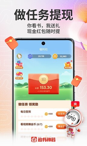 2.通过丰富有趣的福利任务赚取金币,金币可快速提现,看小说就能赚零花,优质福利等你来拿。