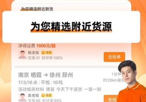 支持快速查找、自动匹配优质货源,高效配货拉货。