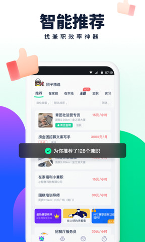 1.面向大学生用户,提供大量校内校外兼职岗位和实习机会。