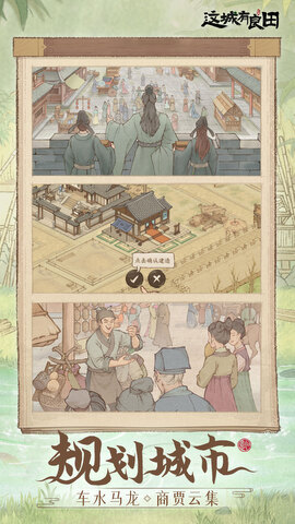 这城有良田是一款唯美古风模拟经营游戏,拥有独特特色的水墨画画风,个性鲜明的人物角色,庞大的世界观设定,为玩家打造一个全新的古代世界。在这城有良田手游中玩家的任务就是招收流民,让他们开垦农田、经营店铺等,玩家自己则需要制定城市发展策略,通过建设城市、施行政策等多种方式,逐步改变和扩大这座城市。