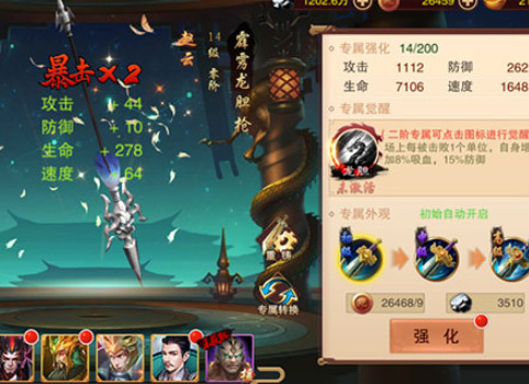 2.策略搭配,选择不同的武将及妖姬组合搭配,就会产生不同的战斗效果。