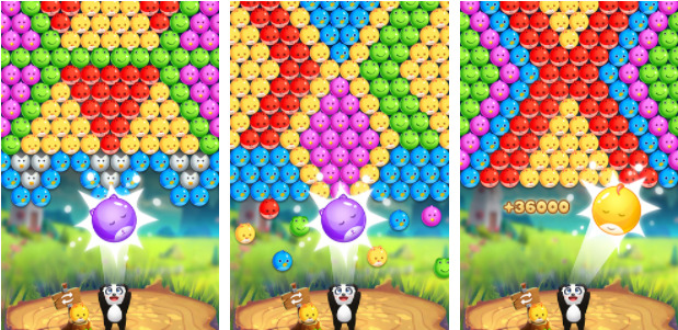 在游戏中,玩家可以利用反弹来消除更上层的泡泡,下层的泡泡也随之掉落,得分高效率更高哦!