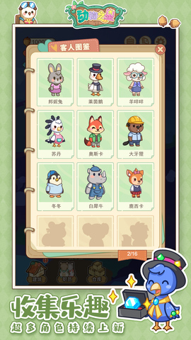 邀请可爱小动物进入庄园,解锁隐藏的客人,建造和升级建筑以获得更多收入。