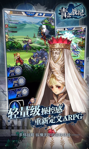 青之战纪是一款垂直动作2DRPG冒险手机游戏。精美的游戏画面和精致的人物设计是这款游戏的一大特色。游戏的玩法和丰富的幻想情节给勇士的冒险带来了无限的可能。勇士可以利用三个角色充分感受游戏的激情和厚重。这款游戏由天野喜孝作为插画师,岩田匡治作为音乐监督员。此外,剧本由松元弘毅制作,超级强大的阵容让你体验到更完美的游戏世界。
