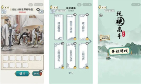 玩梗高手是一款休闲解谜类闯关手游。游戏中包含丰富多彩的游戏玩法和精彩的解谜内容,下载后,不同的游戏关卡等待你的挑战,每一关都能给你带来不同的游戏乐趣。玩梗高手游戏画面以精致的国画风格呈现,不同的场景都有新的目标和任务,玩家可以尽情地挑战各种全新的找茬玩法,并享受大量的关卡带来的游戏体验。喜欢的玩家,快下载吧!