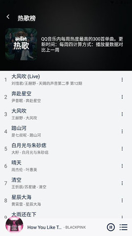 2、不同的歌曲有自己的播放背景和页面,这给你带来了非常相称的视觉体验和听歌。