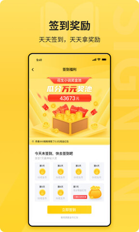 花生小说app是一款非常优质的小说阅读软件,拥有着海量的小说资源,既可免费看书,也可免费听书,甚至还能一边赚钱,让你看书赚钱两不误。花生小说app的阅读界面非常优美,界面简洁、字体优美,还提供智能阅读模式,可以针对用户的阅读习惯,进行个性化的推荐和排版,让阅读更加轻松愉悦。喜欢就来下载吧!