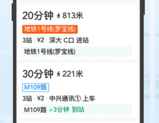-实时定位准确,目的地详细位置指导,提供多种出行方式的组合方案。