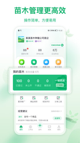2、业务效率更高:业务动态,供应信息,公司实力专属苗店展示,随时把握商机,业务效率更高。