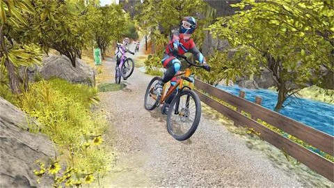 1、真实的山地自行车驾驶体验,全新的速度竞赛,最具创意的越野驾驶体验,各种3D轨道建模,玩家骑行时可以看到沿途不同的风景。