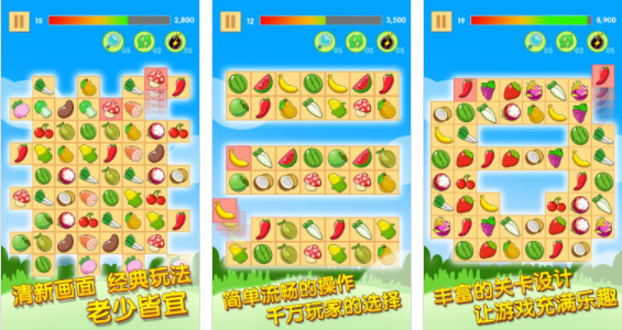 3、游戏玩法超级容易,只需连线2个或更多同色水果即可消除。