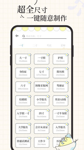 2.软件不仅包含常规证件照尺寸,还人性化地为用户提供场景选择。