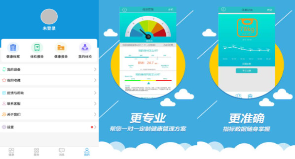 2、设有丰富的个人健康数据管理窗口,本栏有健康档案、健康评估及查阅报告等。