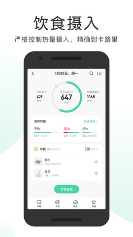 3、每天吃的食物和做的运动都可以记录下来,通过计算卡路里的摄入量来帮助你转化为该做多少运动。
